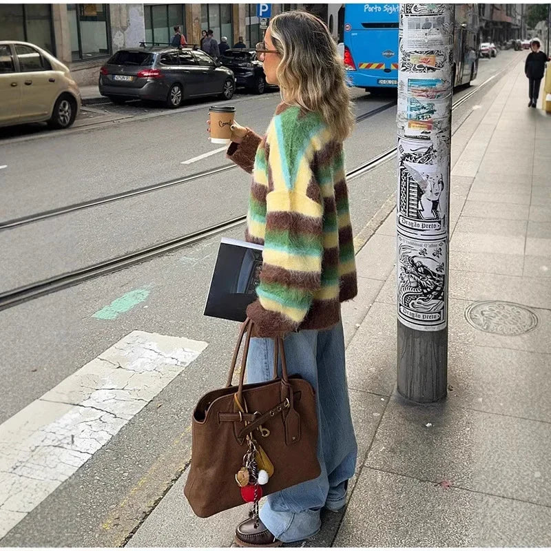 whether full opening : No Pattern : Loose-fitting Yarn Thickness : Regular yarn Percentage of Material : 31%-50% Season : Autumn/Winter Age : Above 65 Years Pattern Type : Cartoon Gender : Women Sleeve Length(cm) : Full Style : Preppy Style Decoration : Pockets...