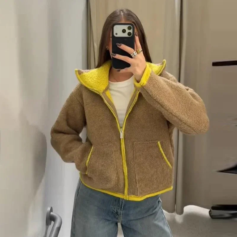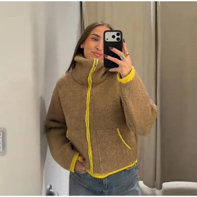 Model Number : Fashion Contrasting Knitted Jacket For Women