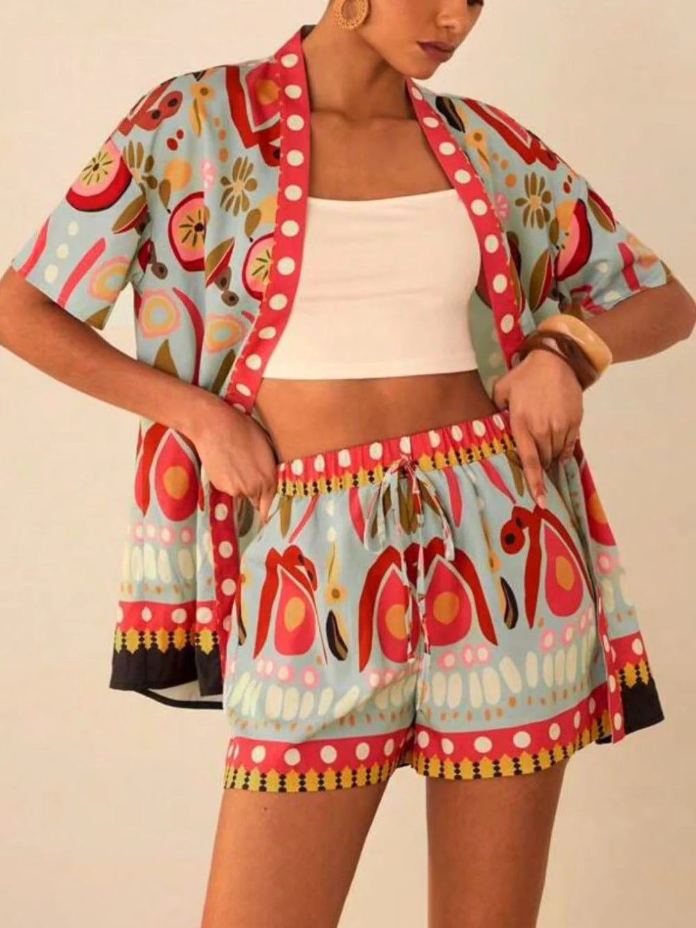 Graffiti Floral Print Shorts Set