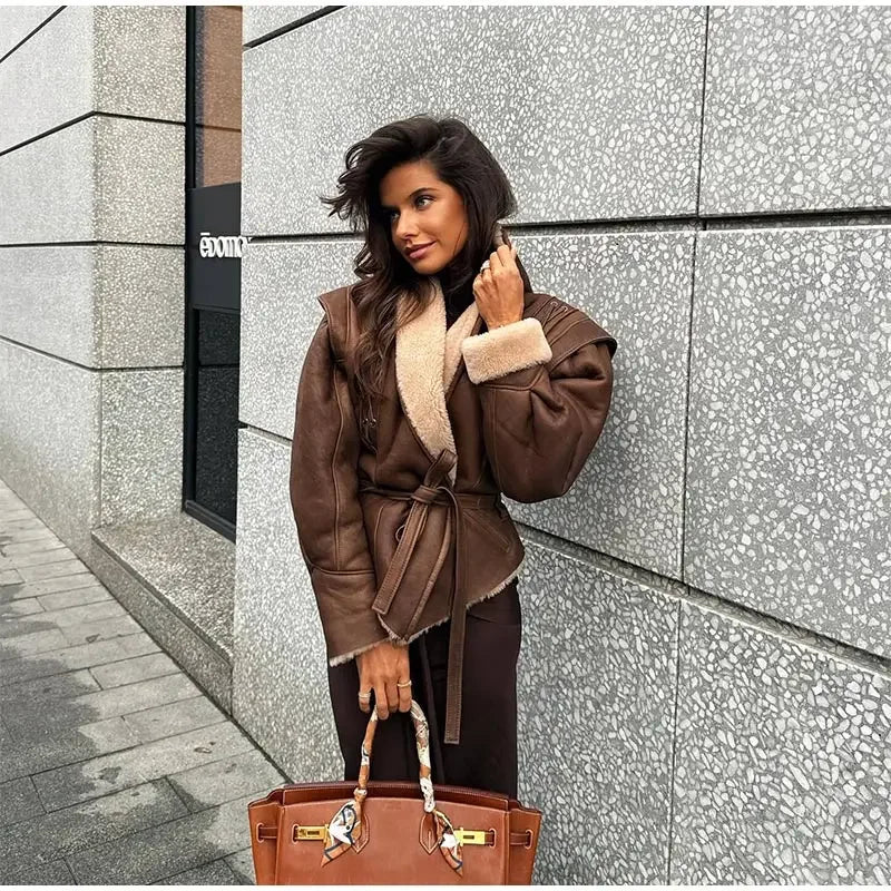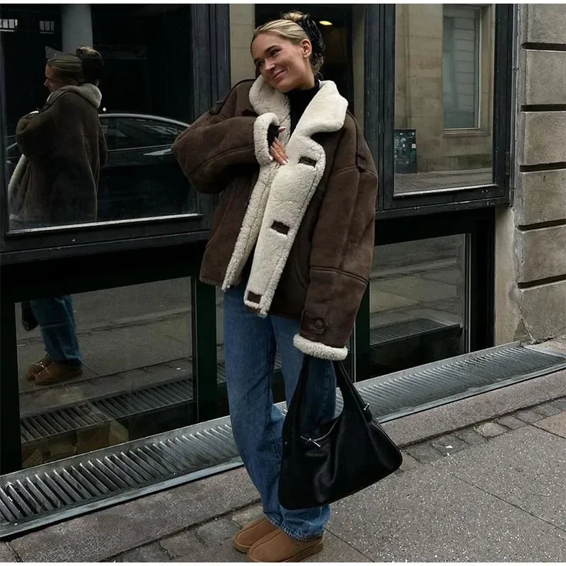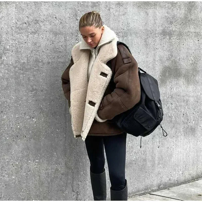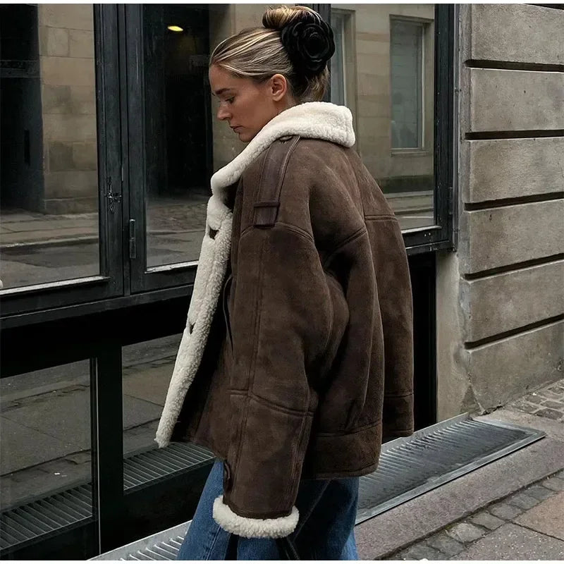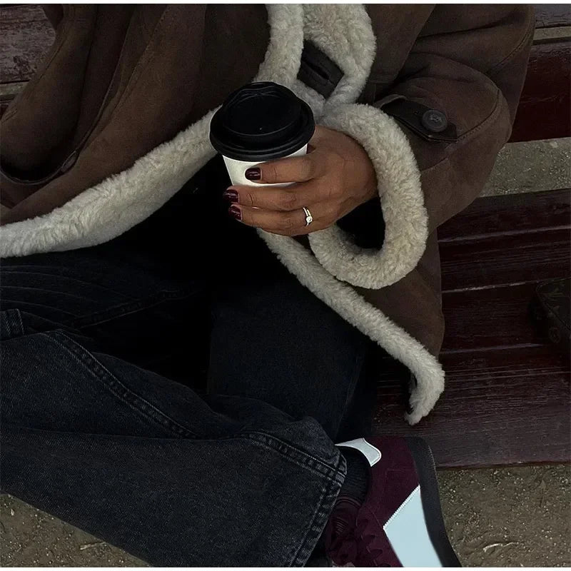 Model Number : Women Lamb Wool Single Breasted Suede Jacket