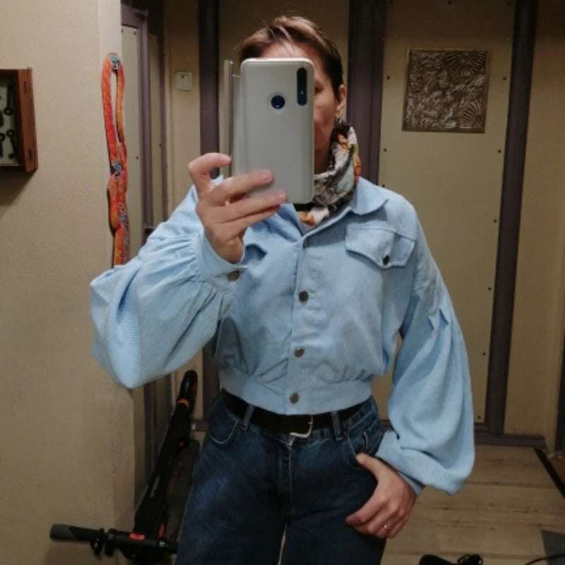 Lantern Sleeve Corduroy Jacket