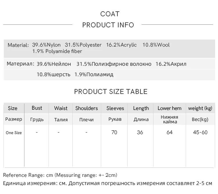 Material Composition : 39.6%Nylon,31.5%Polyeater,16.2%Acrylic,10.8%Wool,1.9%Polyamide