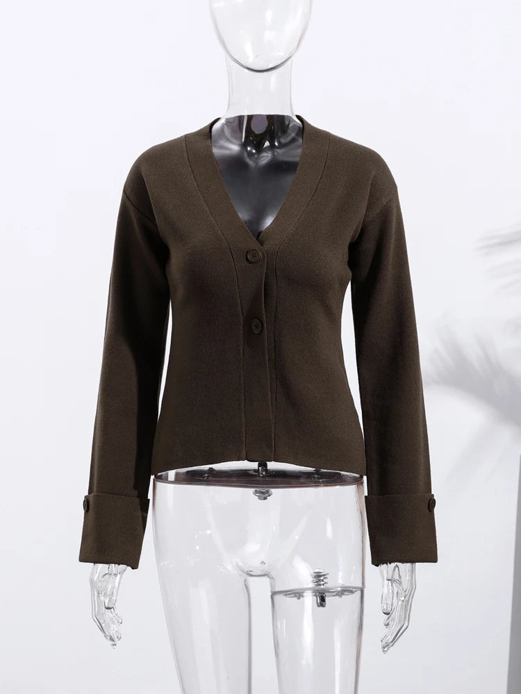Solid Button V-Neck Cardigan