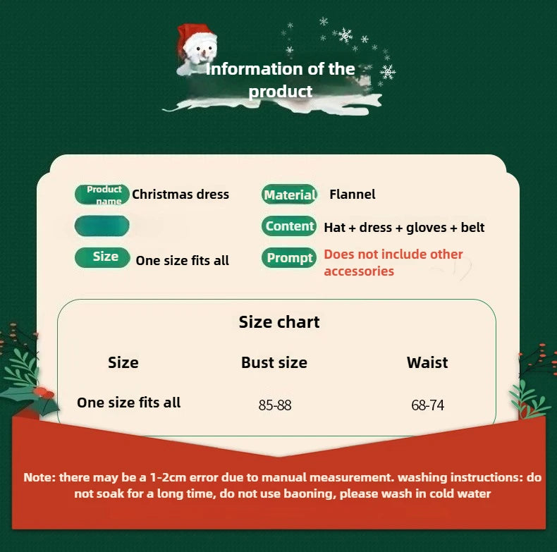 color : Red dress + hat + belt + gloves
