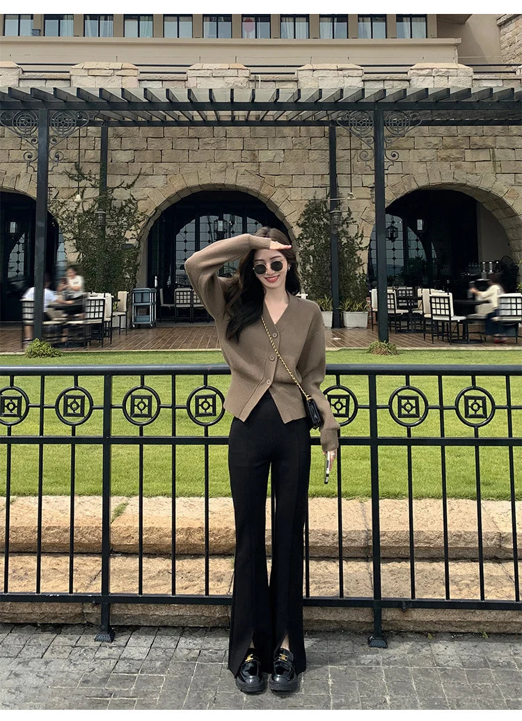 V-Neck Solid Knit Cardigan