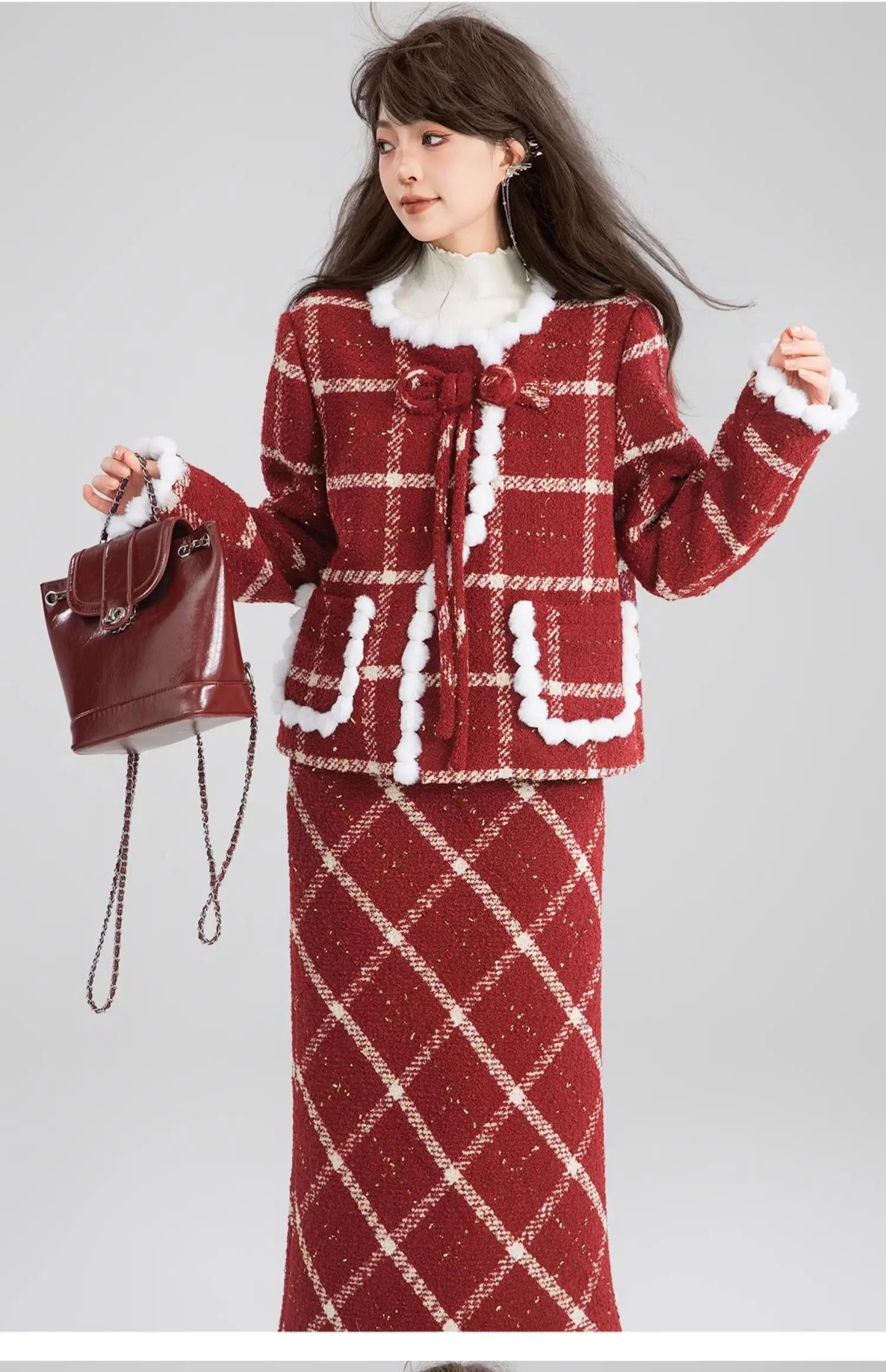 Women’s Red Plaid Christmas Two-Piece Set